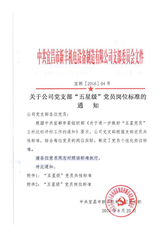 關(guān)于公司黨支部“五星級”黨員崗位標(biāo)準(zhǔn)的通知